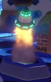 A Rocket is also available as a prize for the Nintendo Land Plaza, which can be randomly unlocked by spending coins in the central tower's pachinko game. When interacted with, this prize launches a Rocket into the air where it harmlessly explodes, and then a new Rocket is spawned in its place.