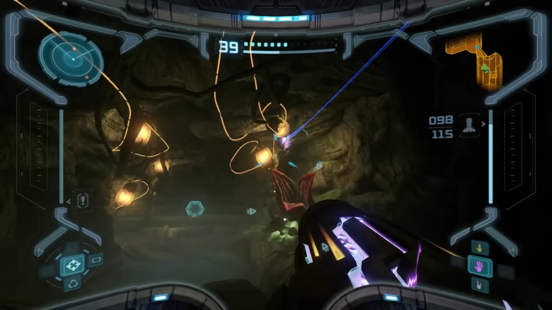 The Root Tunnel is a room in the Tallon Overworld on Tallon IV. It appears in Metroid Prime. It is a cavern containing a pool of water, with Tangle Weeds on the land near the doors. Sap Sacs are present around the ceiling.