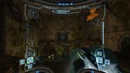 - This room's geometry appears to contain remnants of an unused exit. Above the Map Station door and to the right, a conspicuous section of wall can be seen with pipes extending from behind it. Although this wall is completely indestructible, it still contains a short section of a hallway behind it, with unusual red lighting. The hallway ends abruptly, where it was presumably cut out by Retro designers.