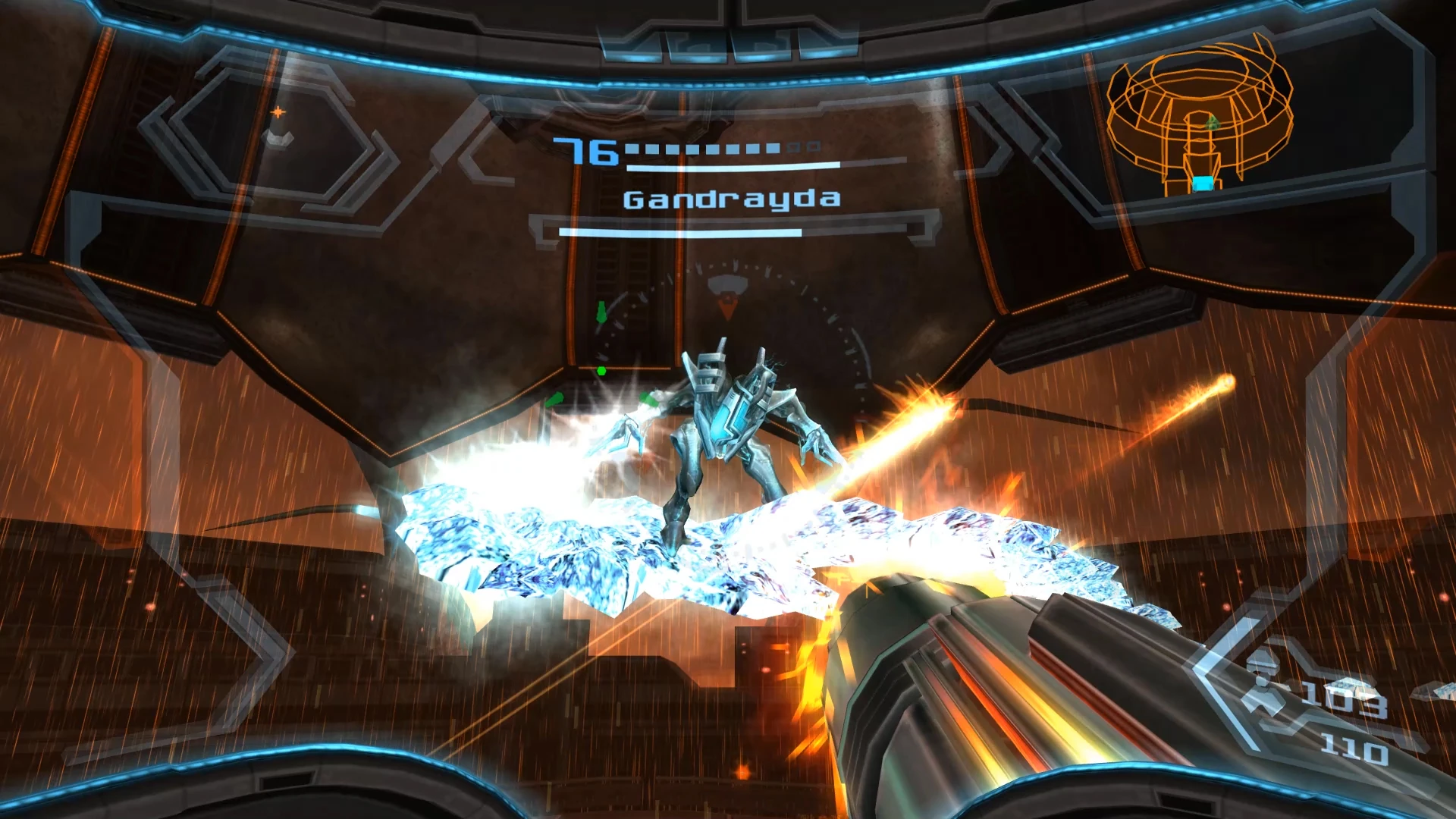 Thanks to Samus' possession of the Plasma Beam at this point, Rundas' armour is much easier for her to remove, a result of his ice-based armour being vulnerable to high-temperature attacks.