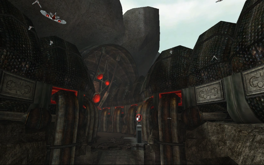 - In the E3 2004 trailer, this room appears slightly different. The Interface Module for the Kinetic Orb Cannon is instead located underneath the locked gate, situated in the center within a small cave. This version of the room was seen once more in the attract mode of Metroid Prime 2: Echoes Bonus Disc. In the final game, the Interface Module is above a cave directly across from the gate. The cave underneath the gate still exists, simply serving as an empty spot. Why the Interface Module was moved remains unclear.