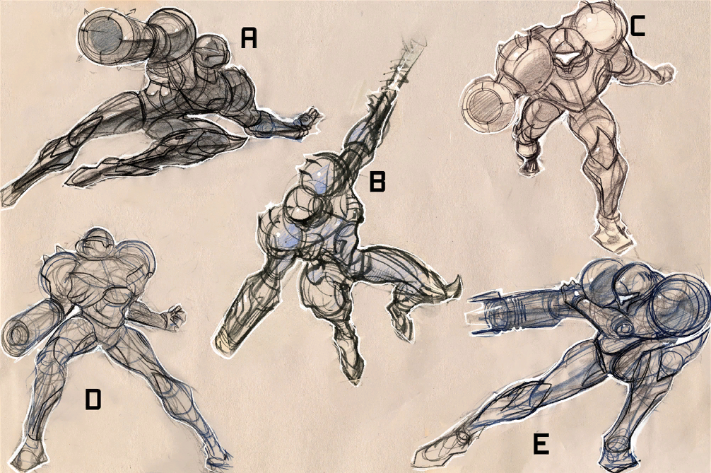 Early concept art of Samus Aran for Metroid Prime.
