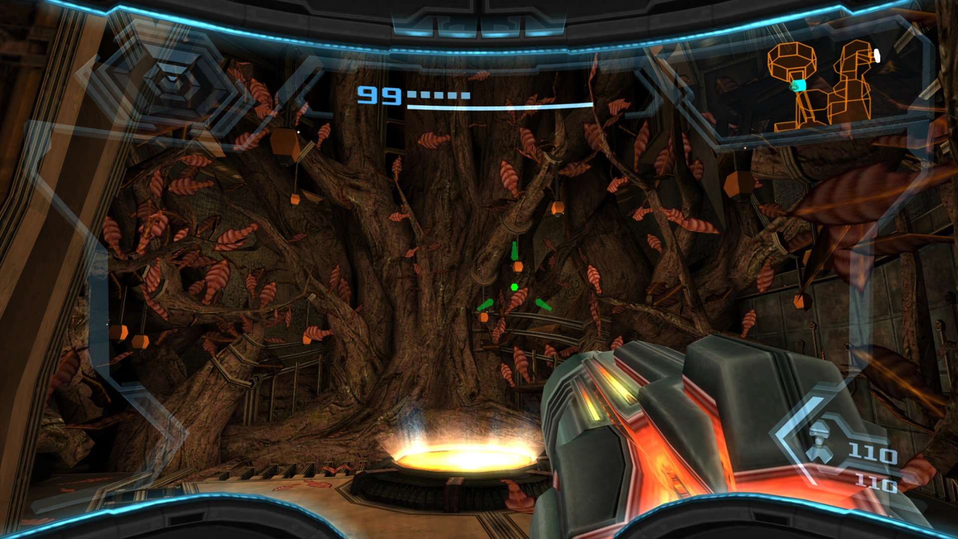 "That save station and metroid lab were a couple of my personal favorites to work on as well. I always really liked the save stations in prime. They had a lot of really good atmosphere, and were always like these little isolated safe zones that felt really good to enter into. This save station was one they decided to add to skytown in the middle of development, and I jumped at the chance to art it up. I think I had just watched Solaris with some friends, and I really liked how in that movie they would attach strips of paper to the vent covers around the ship to emulate the sounds of blowing leaves, to remind them of home. I imagined for the save station that the chozo would create a sort of greenhouse room that would remind them of another home planet or something, when they tired of the gas giant atmosphere of Elysia."[1]