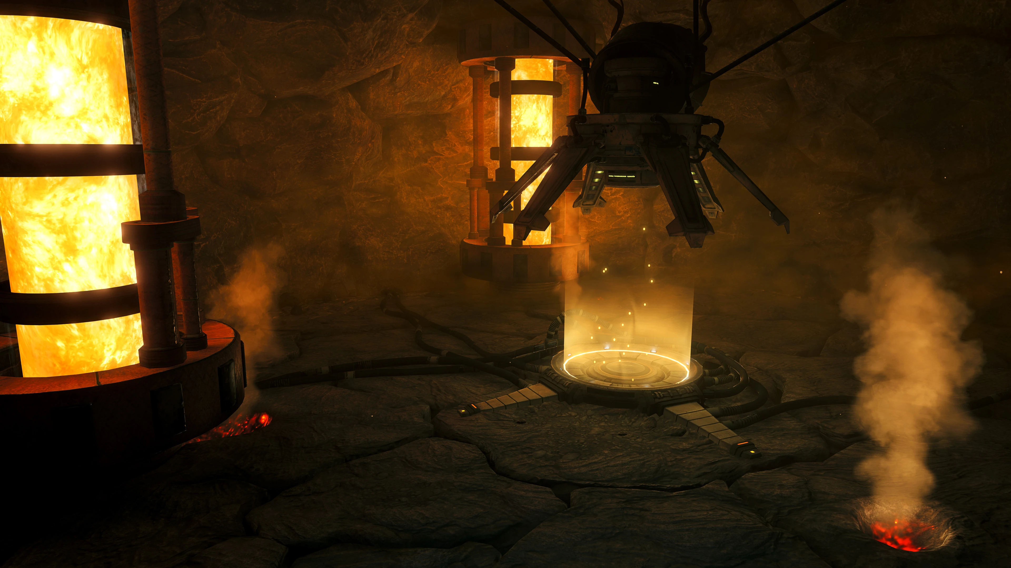Save Station Magmoor B is a Save Station room in the Magmoor Caverns on Tallon IV. It appears in Metroid Prime. It is a small, rocky cave with a few harmless steam vents, lava visible through cracks in the floor, and two lava pumps on the left side of the room. Standing in the steam vents will fog up the Combat Visor.