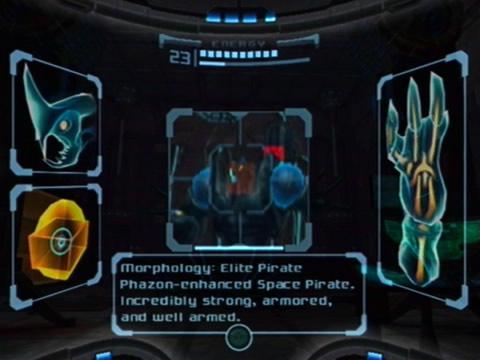 Samus scans an Elite Pirate in Metroid Prime.