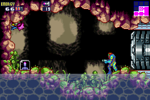 In the Tourian-like area's shaft with the Save Room at the base on the right, Samus must destroy the floor and go to the left (a door on the right is sealed). She must kill a Yard creature with the Wave Beam, allow it to reform into a Gerubus and kill it again, then allow it to become a Gold Space Pirate and kill it. This will unlock the door and give access to this Tank.