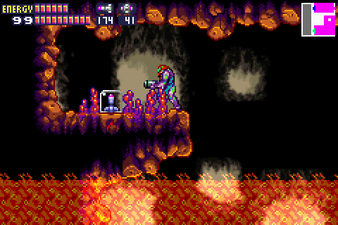 The final Sector 1 Missile Tank is in the same room once again, submerged in the lava. The Gravity Suit is required to safely reach it.