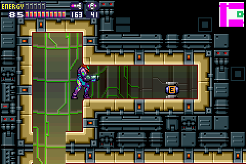 In the large Tourian-like area of Sector 1 immediately after the Restricted Lab, Samus must fire a Diffusion Missile at the wall in the first shaft to reach the Tank.