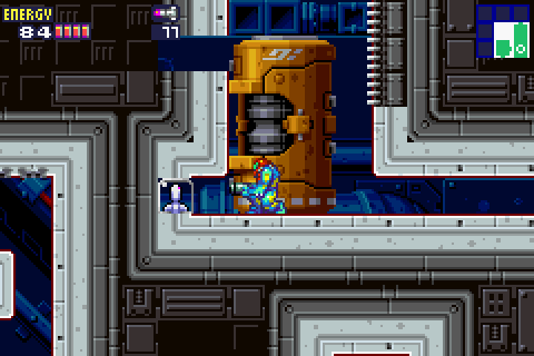 Through a tunnel in the right wall of the shaft next to the Security Room, Samus must kill Scisers using either a Power Bomb or the Wave Beam at the bottom of another shaft, and then their gold variants that appear from the X. Samus can collect the X before they form the gold Scisers, so she must take care to avoid them. This unlocks a door leading to the Tank's room. In the room with the tank, Samus must open up the upper tunnel with Bombs or a Power Bomb to reach the tank in the upper right hand corner.