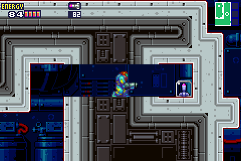 The Missile Tank is found in the room connected to the lower left of the room below the Recharge Station and Save Station. It is obtained by destroying the blue Geron with Super Missiles, and then shooting the fake block containing the tank in the left side of the room, below the broken power node.