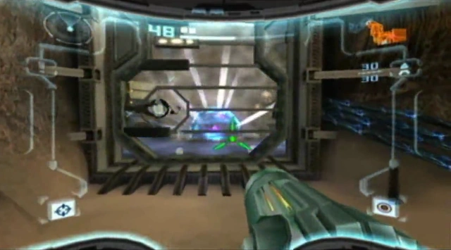 - Strangely, after the cutscene is triggered, but before exiting and reloading this room, if the Dark Beam is hacked, the gates will not move even if shot with the Dark Beam. The room would need to be reloaded first.