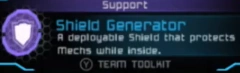 - "A deployable Shield that protects Mechs while inside."