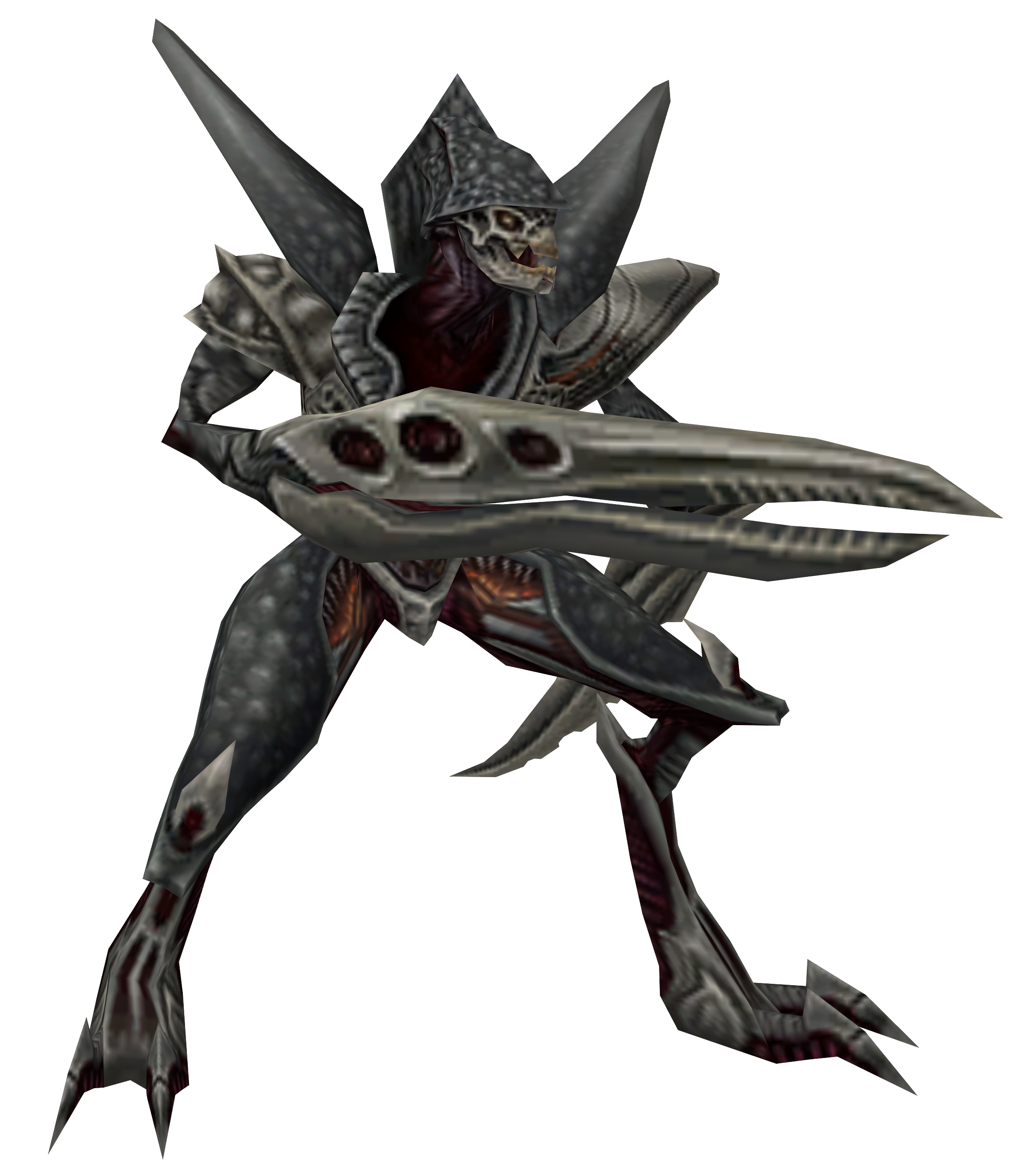 Space Pirates represent a highly intelligent, extremely aggressive species that field well-trained armies in ruthless attacks on the Galactic Federation. Space Pirates seek to become the dominant force in the galaxy, and their technology may help them realize this goal. Fierce warriors, they wield galvanic accelerator cannons and forearm-mounted scythes in battle.