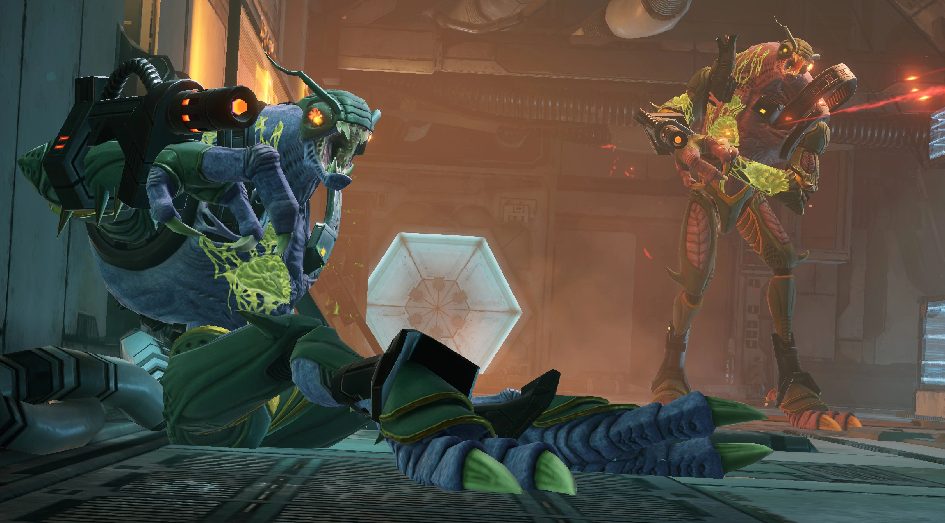 Space Pirates wield Galvanic Accelerator Cannons and forearm-mounted Scythes in combat. This species seeks to become the dominant force in the galaxy, and their technology may help them realize this goal. Ruthless and amoral, the Pirates care little for the cost of their ambition. Only the results matter, and they take these very seriously.