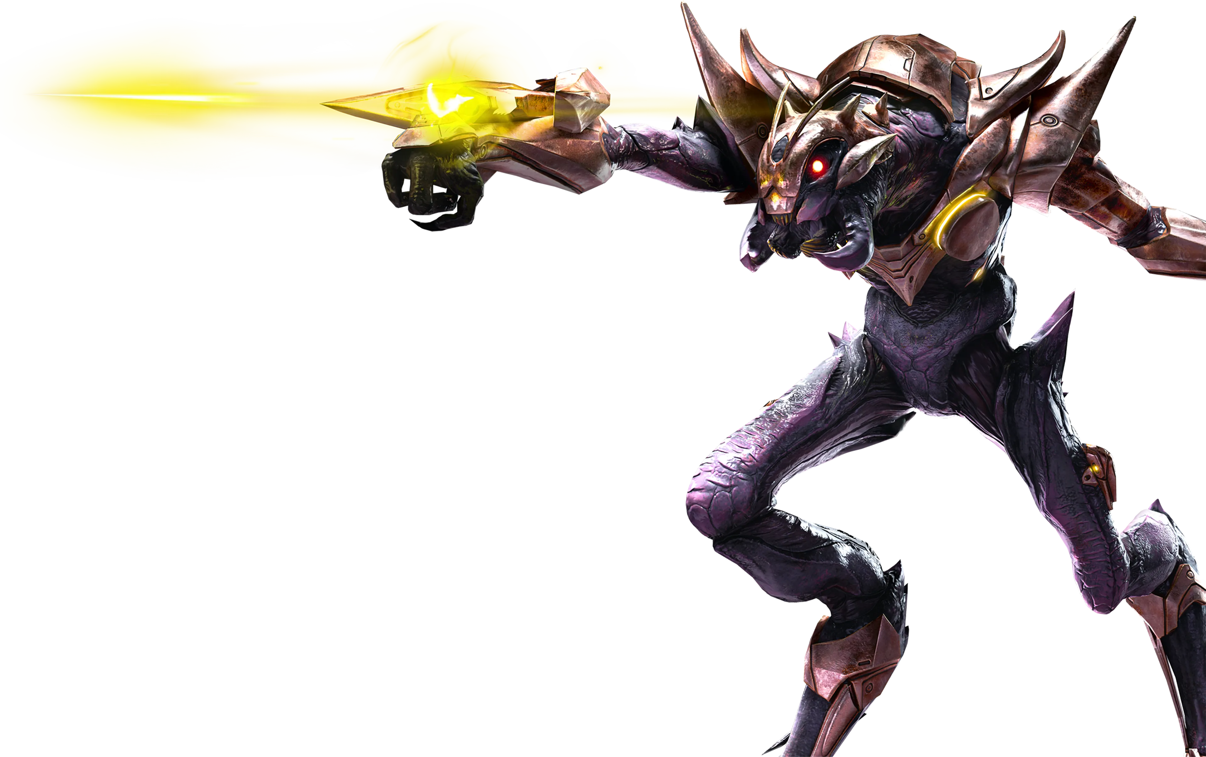 The "Space Pirates," an army of marauding warriors who aspire to control the galaxy, are made up of a number of different aliens, and the various species fulfill roles in alignment with their respective strengths. For example, the numerous, rapidly reproducing insect-like members serve as rank-and-file soldiers and are usually used to defend Space Pirate bases. They have powerful legs and can march extreme distances. They are typically armed with quantum assault cannons on their forearms for ranged combat and concealed photon energy blades for use in close quarters.