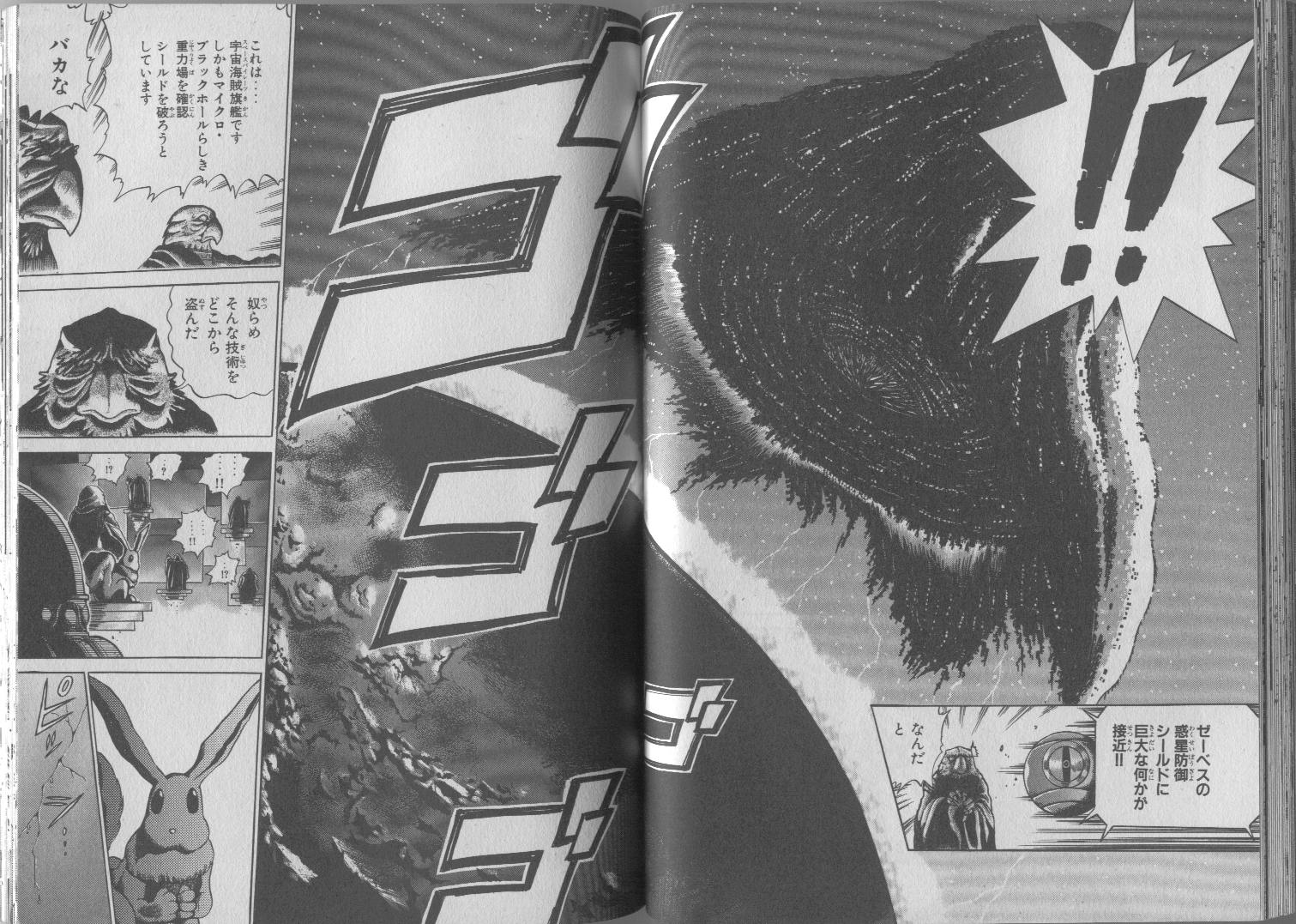 It reappears in Chapters 4 and 5 of Volume 1. The Chozo of Zebes, in the midst of a discussion about the X Parasites on SR388, find that a Metroid is reacting to something. Mother Brain's eye mechanism then appears and states that an unknown large object is approaching the Planetary Protection Shield. The flagship uses the gravitational field of a micro black hole to destroy the shield, so that they can conquer the planet.