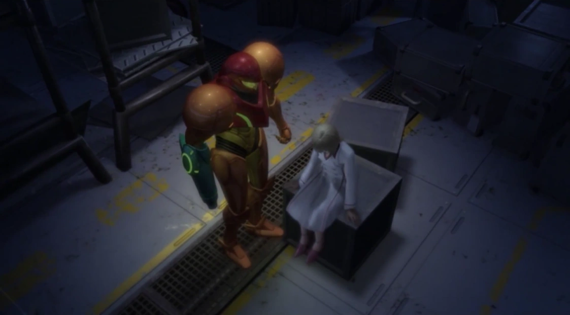 "Madeline" sits on a crate as she explains the special-forces unit that was in development on the BOTTLE SHIP, and claims that she sent the Baby's Cry signal. Samus assesses her arguments and silently praises her sense of responsibility, but finds inconsistencies in her story. Madeline then mentions there was "an even more dangerous plan", and beckons Samus to follow her back into the main laboratory.