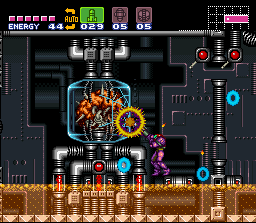 The final boss, this entity is a supercomputer resembling a disembodied brain in a tank protected by deadly Rinka laser rings, automated defense cannons, and self-regenerating organic life support conduits. When it is down, a new mechanical body rises out of the floor, allowing Mother Brain to move. After the second defeat, Zebes' final Countdown begins.