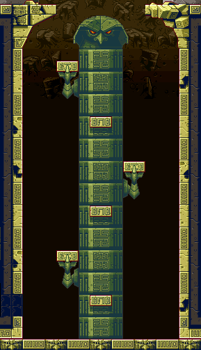 When Samus Aran first sees the tall Chozo structure during her Zero Mission, it is mostly buried in the floor of a shaft in the Chozo Ruins, leaving her without a way out of the temple. Once the Power Grip is obtained from an adjacent room, the tall Chozo structure rises to its full height, and platforms materialize in its claws and down its center. This teaches Samus how to use her newly-acquired Power Grip as she jumps from platform to platform, ascending the structure and exiting the chamber.