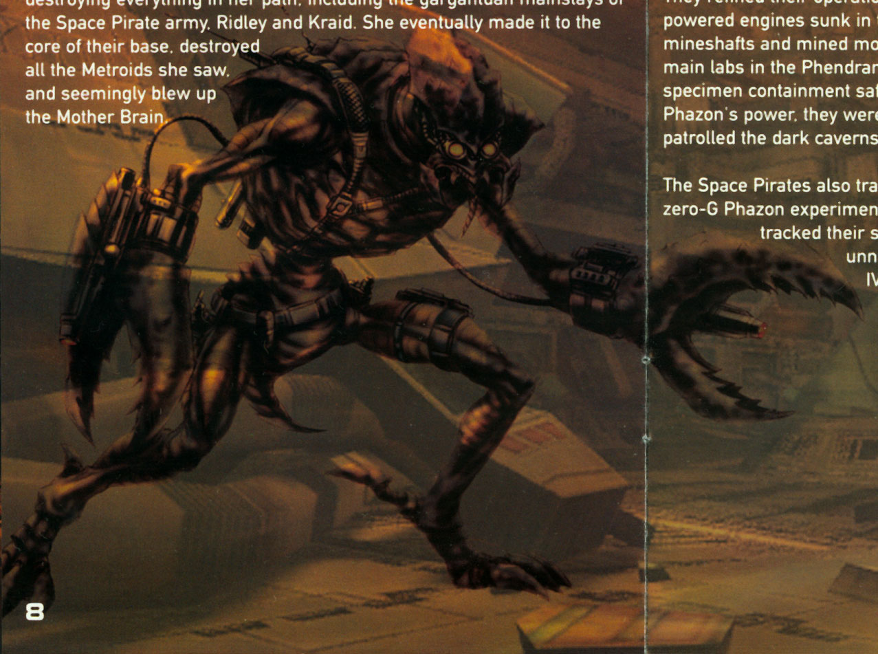 After the events of Samus Aran's Zero Mission the Space Pirates fled from Zebes. It was only a short amount of time, however, before they discovered massive energy readings emitting from planet Tallon IV. They landed on the planet, and soon discovered the substance known to the Chozo as the Great Poison. Recognizing its immense potential, the Space Pirates named it "Phazon" and began experimenting with it, raising a stealth shield over the planet to hide their activities.