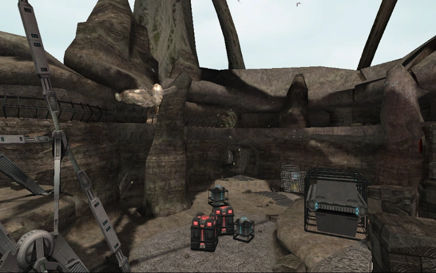 Several Galactic Federation Crates litter the floor of this room, along with stacks of ancient Luminoth statues. The statues form a circle around a clearing supposedly designed for Luminoth meetings. A violet Translator Door, which Samus must receive an update for her Translator Module to bypass, blocks the entrance to an elevator. Among the Luminoth ruins are Galactic Federation equipment like a GF Combat Crane and other heavy tools. A statue with a violet crystal blocks access to a Portal and must be shot with the Light Beam in order to move it. Dark Aether's duplicate of this room is known as the Plain of Dark Worship.