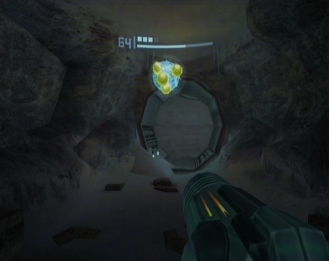 Temple Entryway is a room in the Phendrana Drifts on Tallon IV in Metroid Prime. It is a passage with snow-covered rock either side of a smooth, round tunnel. At each end is a Pulse Bombu, and a Scatter Bombu is present in the middle. The entrance to the tunnel is blocked with ice that can be removed with a Missile or charged shot from any Beam.