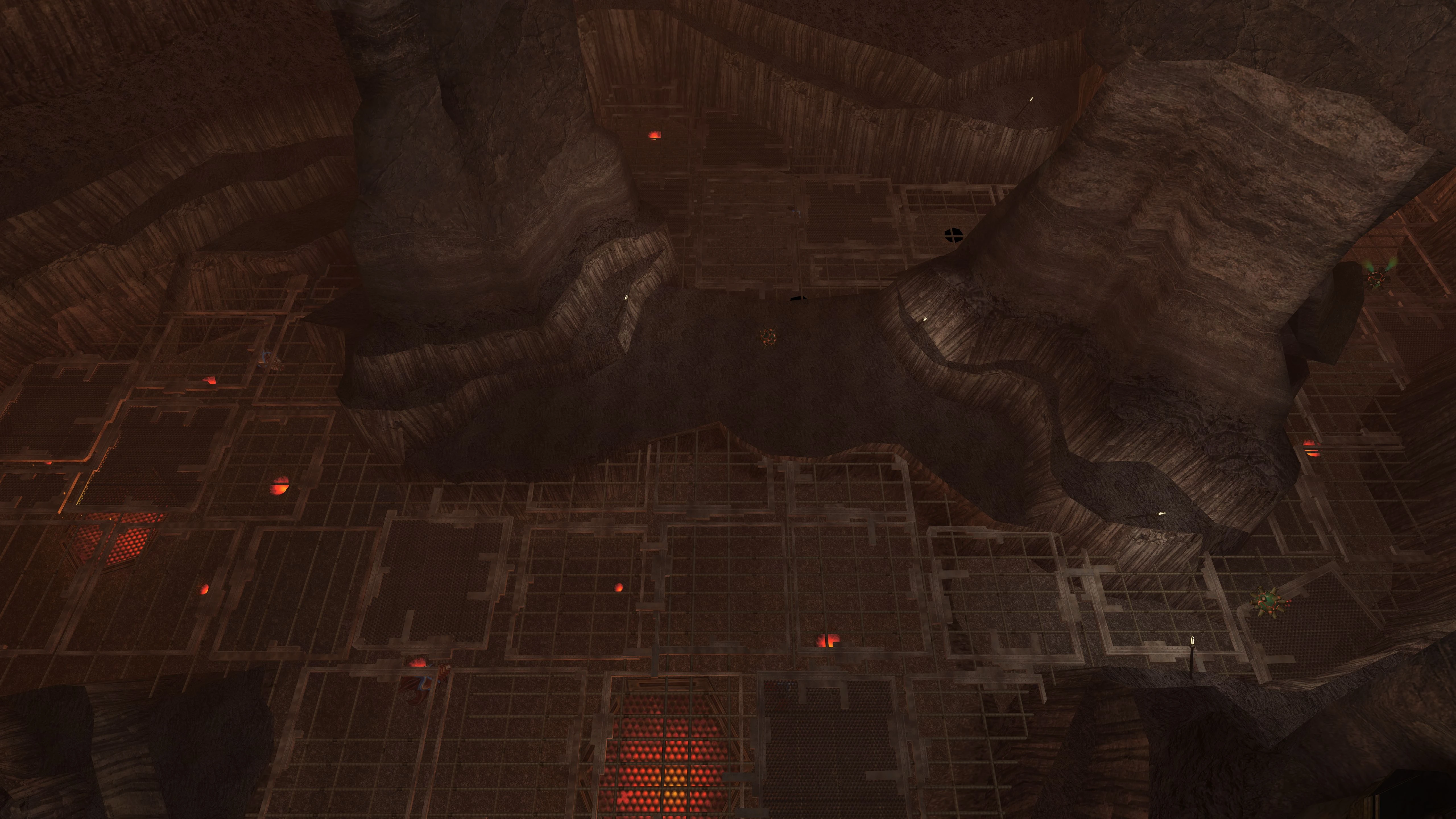 The Triclops Pit is a large cavern with metal grids covering the floor and a pipe that leads below the grids, small enough that the Morph Ball must be used. Underneath, there are multiple Triclops; following the path, there is another pipe leading to Storage Cavern. Above the grids, there are a few rock pillars. Platforms with Puffers around them lead up to the Monitor Tunnel door, some of which descend when Samus stands on them, and near the door to Pit Tunnel there are a few metal crates. Vents of red steam in parts of the room fog up Samus's vision for a short period of time if she steps into them.