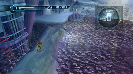In the Water Tank, Samus destroys a cover on the drain, forcing all the water into this cavern. The current carries her back into the cavern, which becomes mostly submerged. As she does not have her Gravity Feature authorized at that time, Samus's movements are made sluggish in the water. She carefully proceeds to the ladder (avoiding and/or killing any Skulteras) and then climbs it back to the surface. She can run across the toppled column, which floats on the surface of the water, and use it to reach some of the wall platforms that were not submerged. Samus is then able to return to the now empty Water Tank and continue through the Cryosphere. Notably, the fallen column is visible as a section of the room on the minimap.