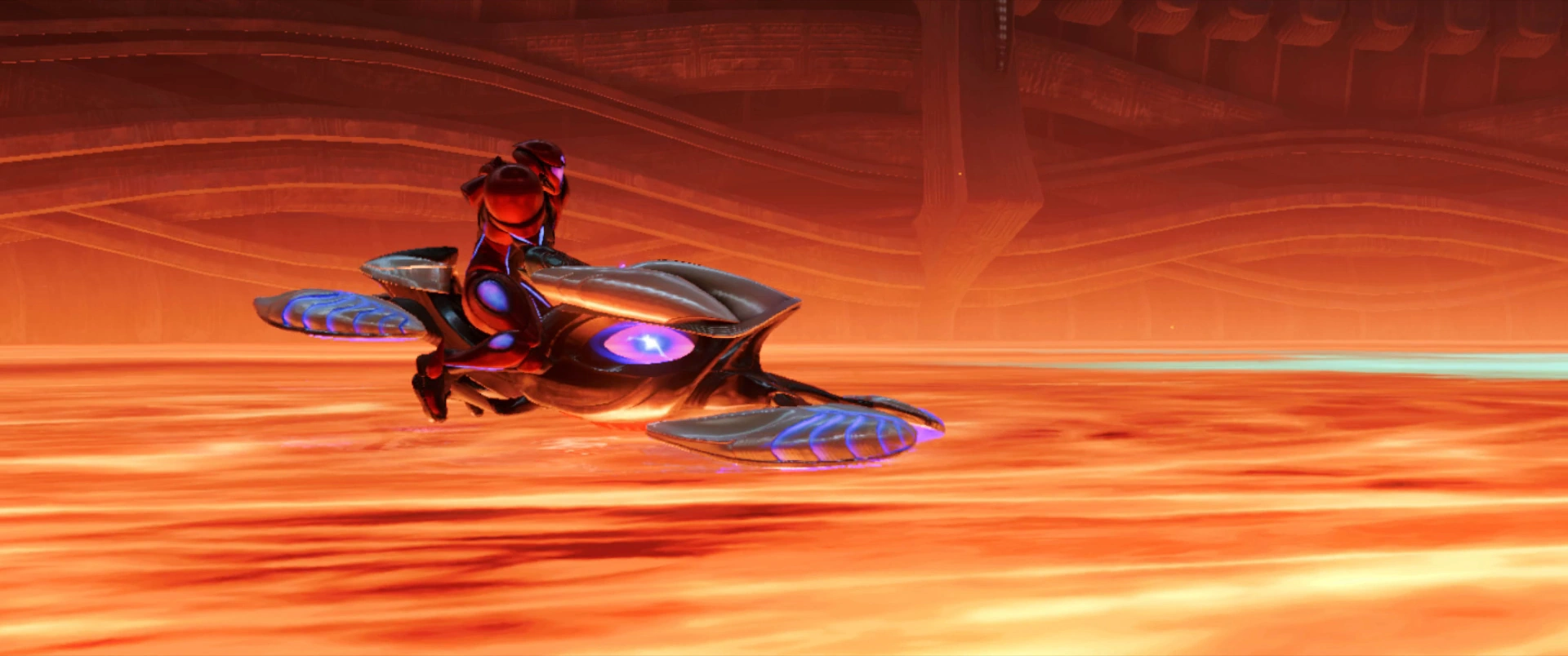 Famed bounty hunter Samus Aran, wearing her Vi-O-La Suit. She rides Vi-O-La, a technologically advanced bike to explore the mysterious planet Viewros.
