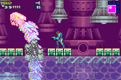 The life-support systems in Samus's Power Suit allow her to survive underwater almost indefinitely. However, she cannot swim, nor can she move quickly, jump high, or use the infinite Bomb Jump, Speed Booster, and Space Jump underwater before she obtains the Gravity Suit in most games (the Gravity Boost provides a similar effect in Metroid Prime 2: Echoes). This also applies to her movements in acid, lava, and any other liquids in the games. In Metroid: Other M, Samus cannot fire her weapons as quickly as on land until the Gravity Feature is activated and all of her other movements, such as transforming into Morph Ball mode, are slowed as well. Water in Sector 2 / Cryosphere notably has a purple hue, likely a reflection from the ice that comprises much of the sector.