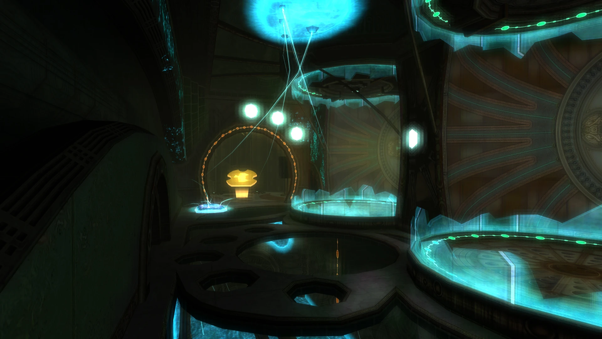 This room functions as transport between Xenoresearch A and Xenoresearch B. On its lower floor, two containment units each hold a Phazon Metroid. A Hand Scanner must be used to activate the elevator. The Metroids escape after the pod loses power.