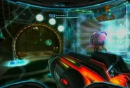 The Xenoresearch Labs is where Samus acquires the Seeker Missile Launcher in order to obtain the Third Bomb Component back on SkyTown, which is contained by a locking mechanism vulnerable to five simultaneously fired Missiles. In order to get past its containment unit, she has to remove the Energy Cell powering it. Doing so unleashes all the Phazon Metroids in the area, which subsequently move on to infest several other areas of Eastern SkyTown. Following the Elysia Seed's destruction, the Metroids, while encountered in other areas of Eastern SkyTown, are no longer encountered in the Xenoresearch Labs. Despite this, should Samus for whatever reason return to them, the foreboding music that plays once the Metroids are released can still be heard.