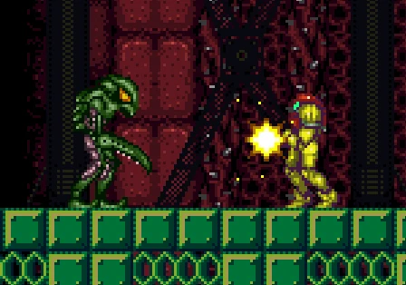 Zebesian Pirates are absent for the entire game, except in a single image depicted in the introduction sequence to explain the events that led to the SR-388 incident. They are glimpsed in the form of shadows cast onto a floor as they approach a Metroid specimen contained within the Space Research Vessel Marina.