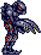 Cyborg Zebesians are the weakest of the two cybernetically-enhanced types inhabiting the BOTTLE SHIP. They are either partially or entirely covered in metal. Regardless, their claws are completely replaced with prosthetic ones capable of firing Missiles as well as beams. They come in four design variants, two of which have arm cannons in place of their left claws.